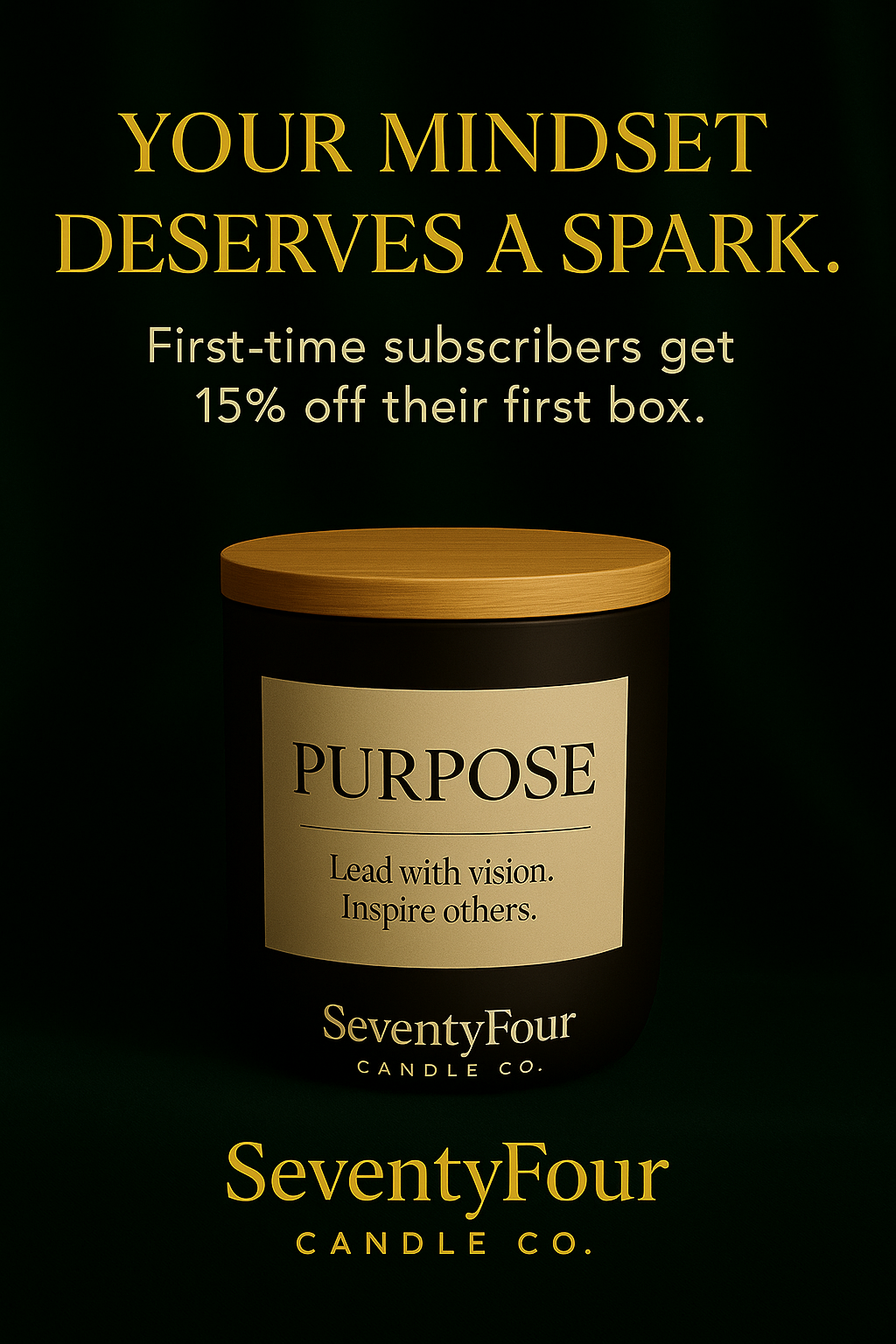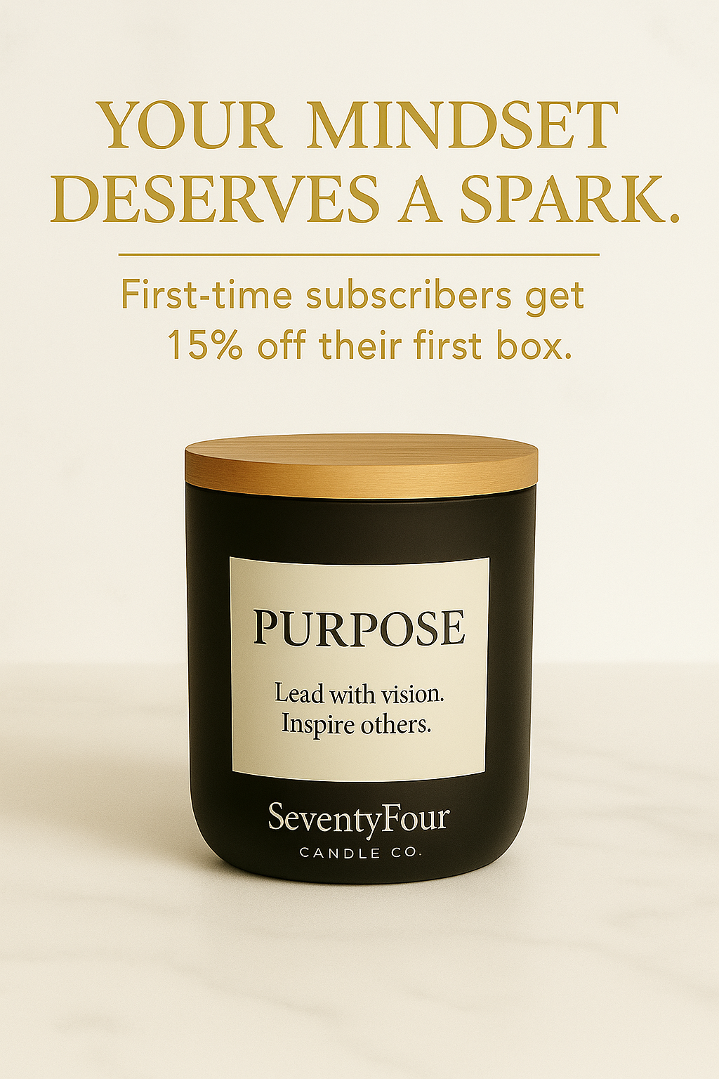 Subscribe to the SeventyFour Candle Co. experience and receive one motivational, hand-poured candle each month—Each candle in SeventyFour Candle Co. is hand-poured and designed to fuel the grind, sharpen your focus, and light the fire under your goals..
